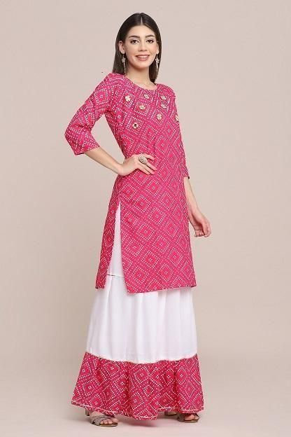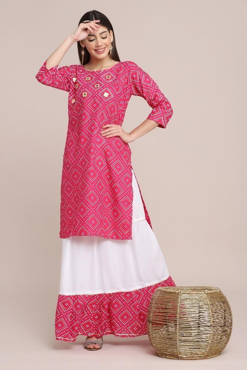 Description: 1 Piece of Kurti, 1 Piece of Skirt Fabric; Kurti: Rayon , Skirt : Satin Length; Kurti: 46 In, Skirt : 39 In Size; Kurti: M-38, L-40, XL-42,XXL-44, Skirt : Free Size(Upto 44) Work; Kurti: Printed , Skirt :Printed