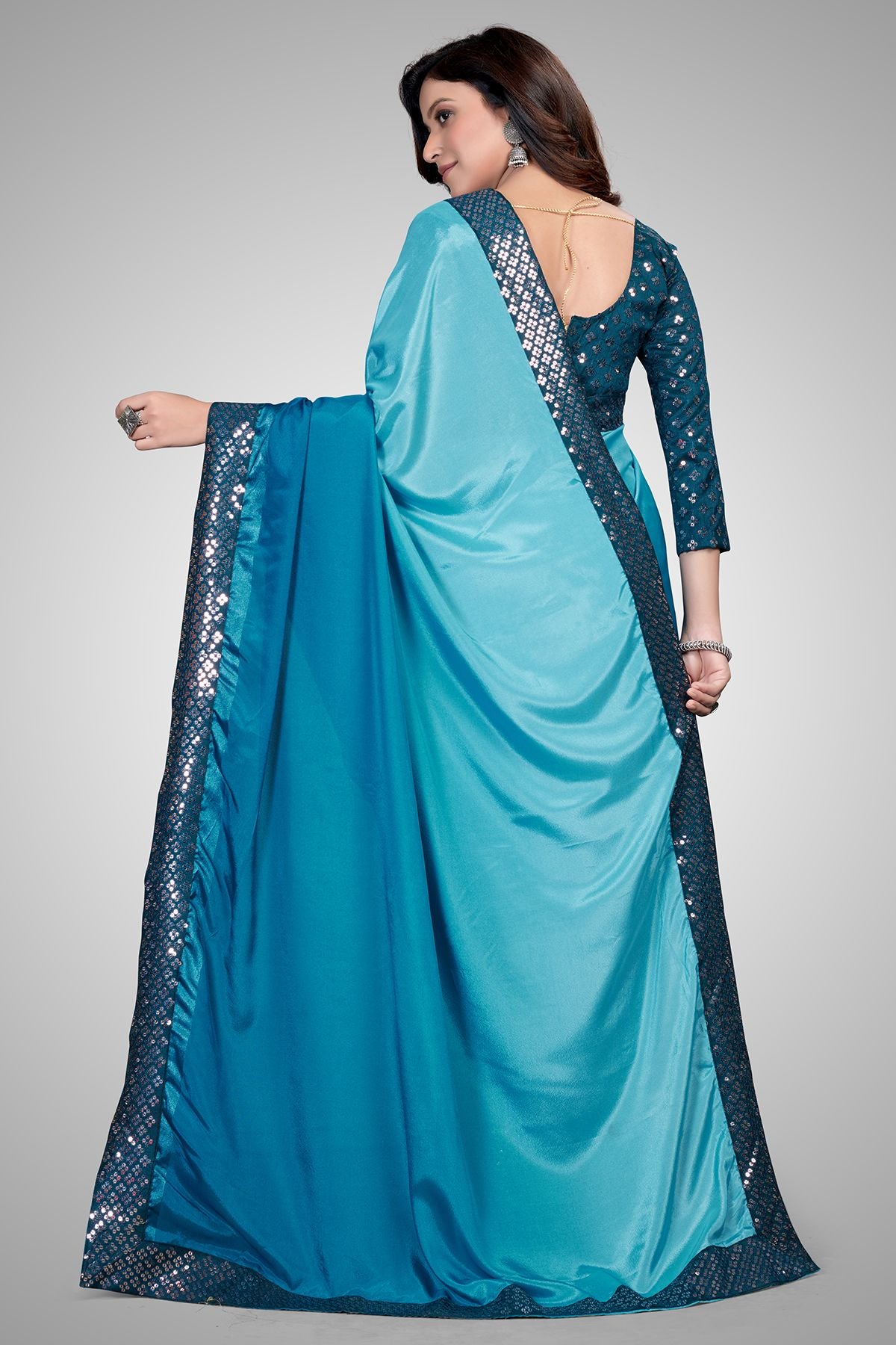 Fancy Embellished Light Blue Coloured Silk Saree with Blouse Piece