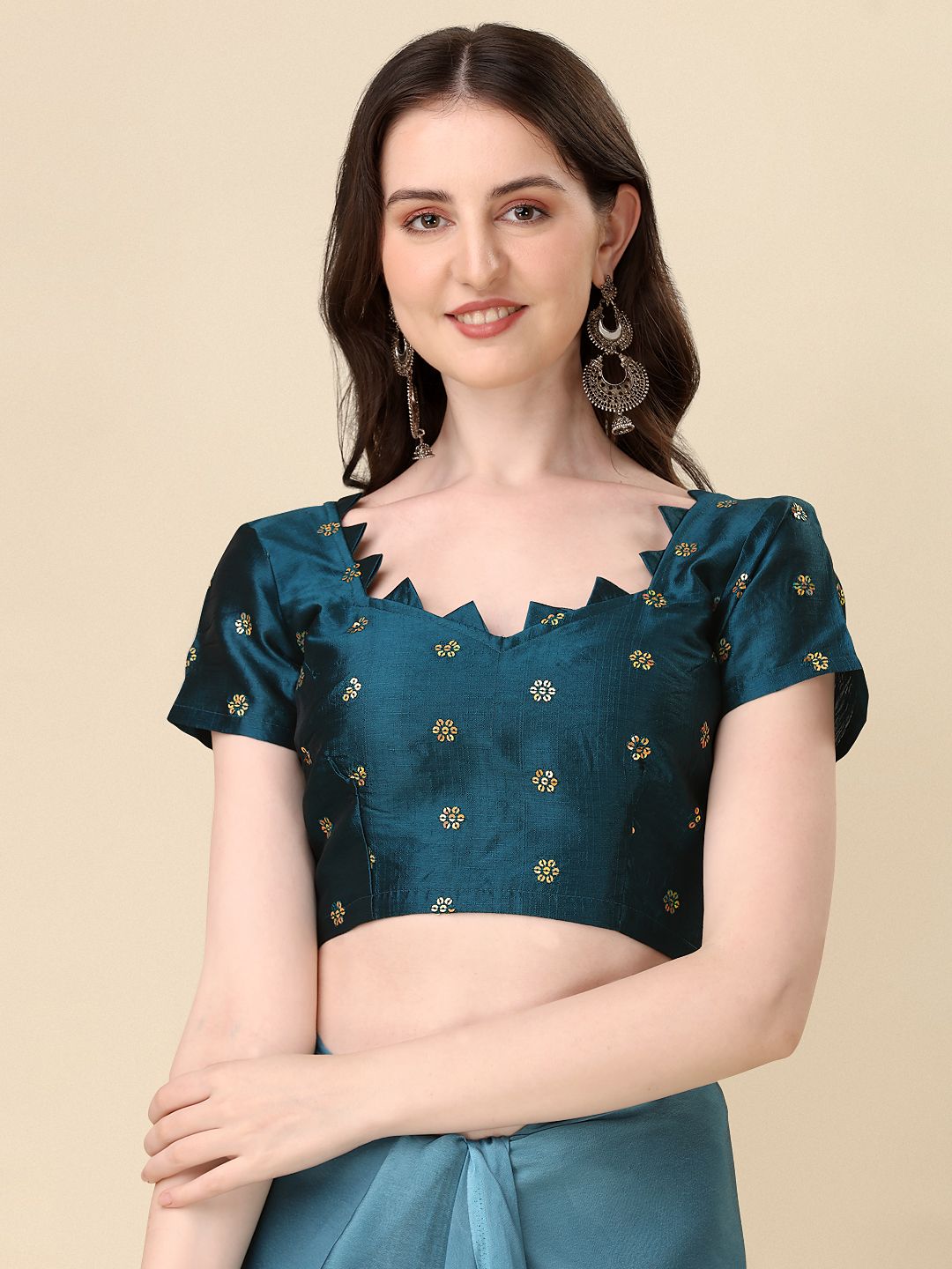 Fancy Embellished Teal Blue Coloured Silk Saree with Blouse Piece