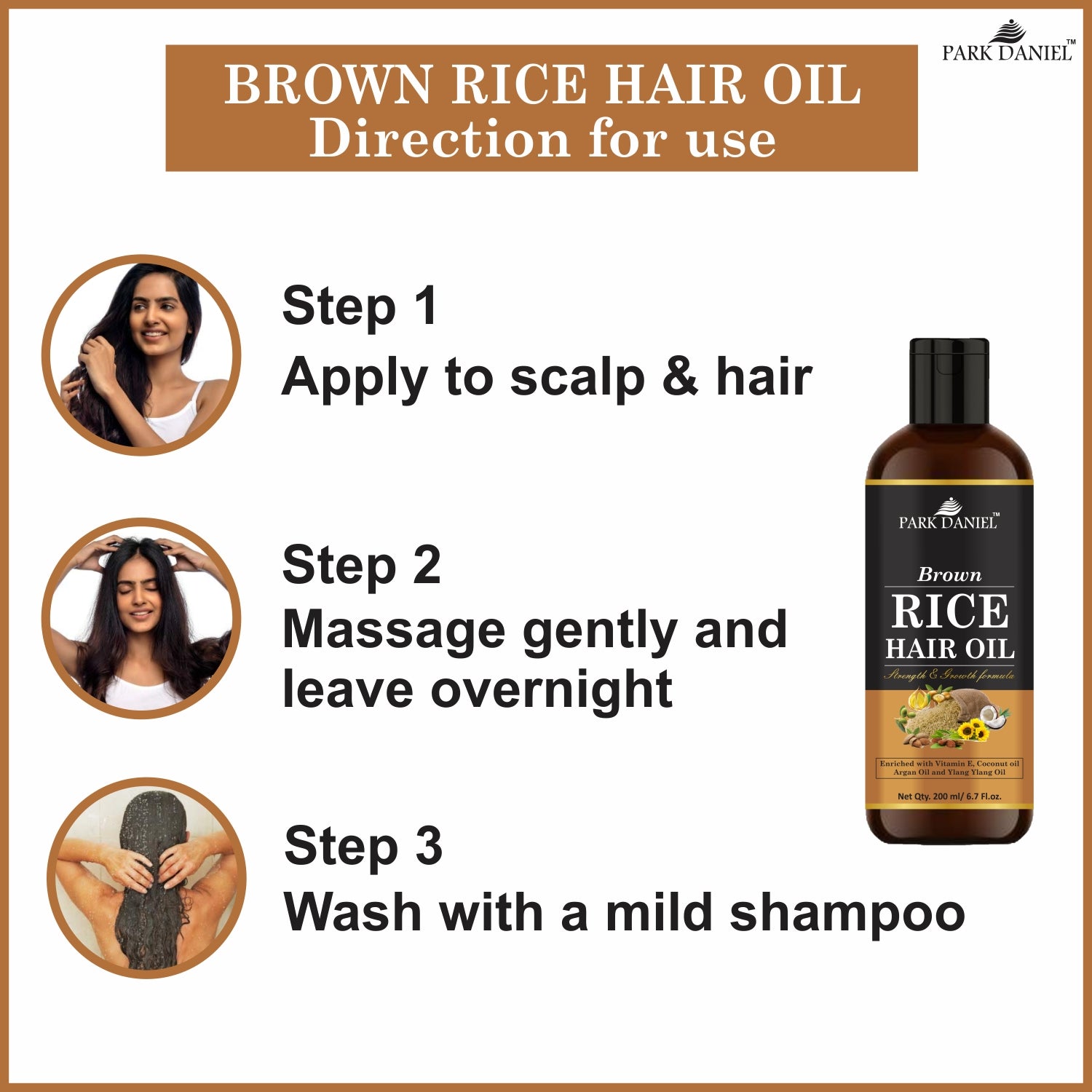 Park Daniel Premium Brown Rice Hair Oil Enriched With Vitamin E - For Strength and Hair Growth Combo Pack 2 Bottle of 200 ml(400 ml)