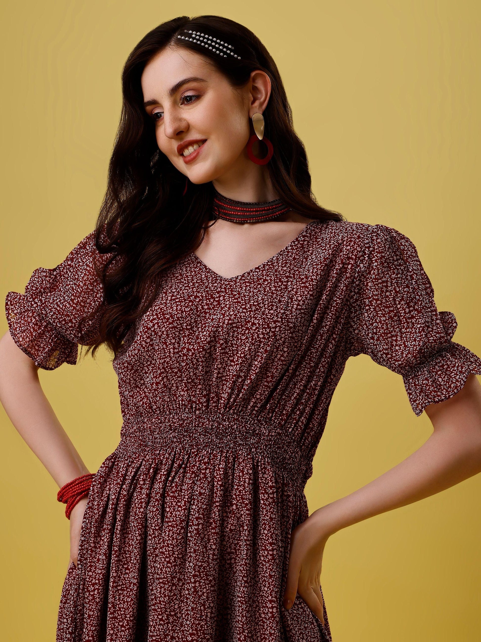 Plus Size Women's Georgette Printed Flared Midi Dress