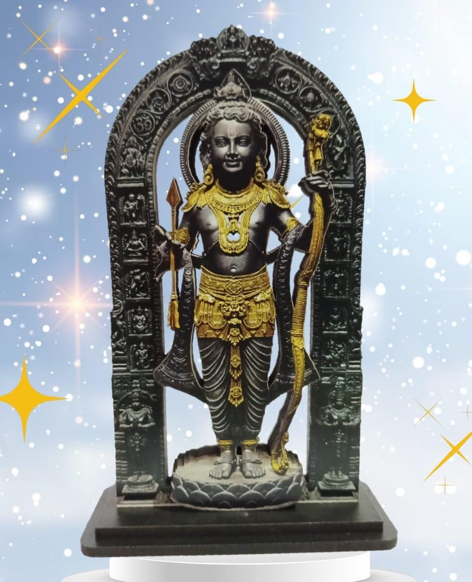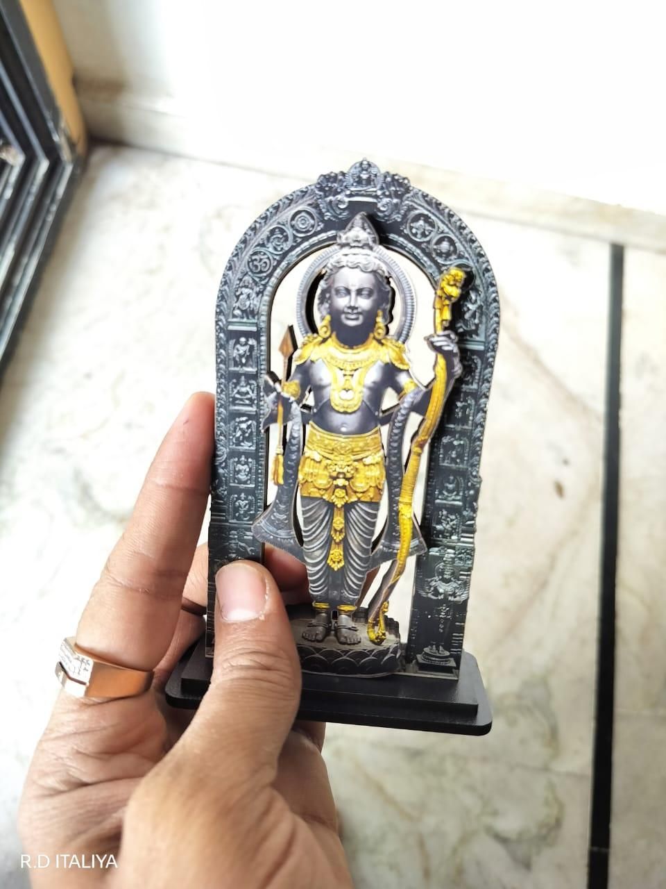 Product Name - Ram Mandir Ayodhya Black 3D 3 LAYER Printed MDF Wooden Statue for Home