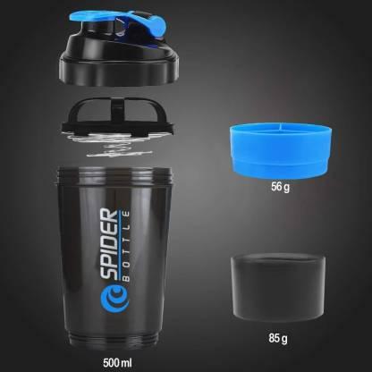 Product Description: Spider Protein Shaker| Sipper Bottle| Gym Bottle| - 600 ml Shaker 600 ml Shaker Package Contains: It has 1 Piece of Spider Protein Shaker| Sipper Bottle Material: Plastic Color: As per availability Weight: 350gm Additional Information: The Liquid Portion Of The Shaker Holds 20oz (600ml), While Each Of The 2 Compartments Hold 3oz Giving You 26oz Of Storage For Water, Powder Mixes And/or Vitamins. Never Miss Your Daily Vitamins Again And Rest Assured It Won't Leak! 100% Bpa Free: Our Protein Shaker Bottle Is Bpa, Pvc, Lead, And Phthalate Free Giving You The Comfort Knowing You're Not Drinking Harmful Manufacturing Chemical